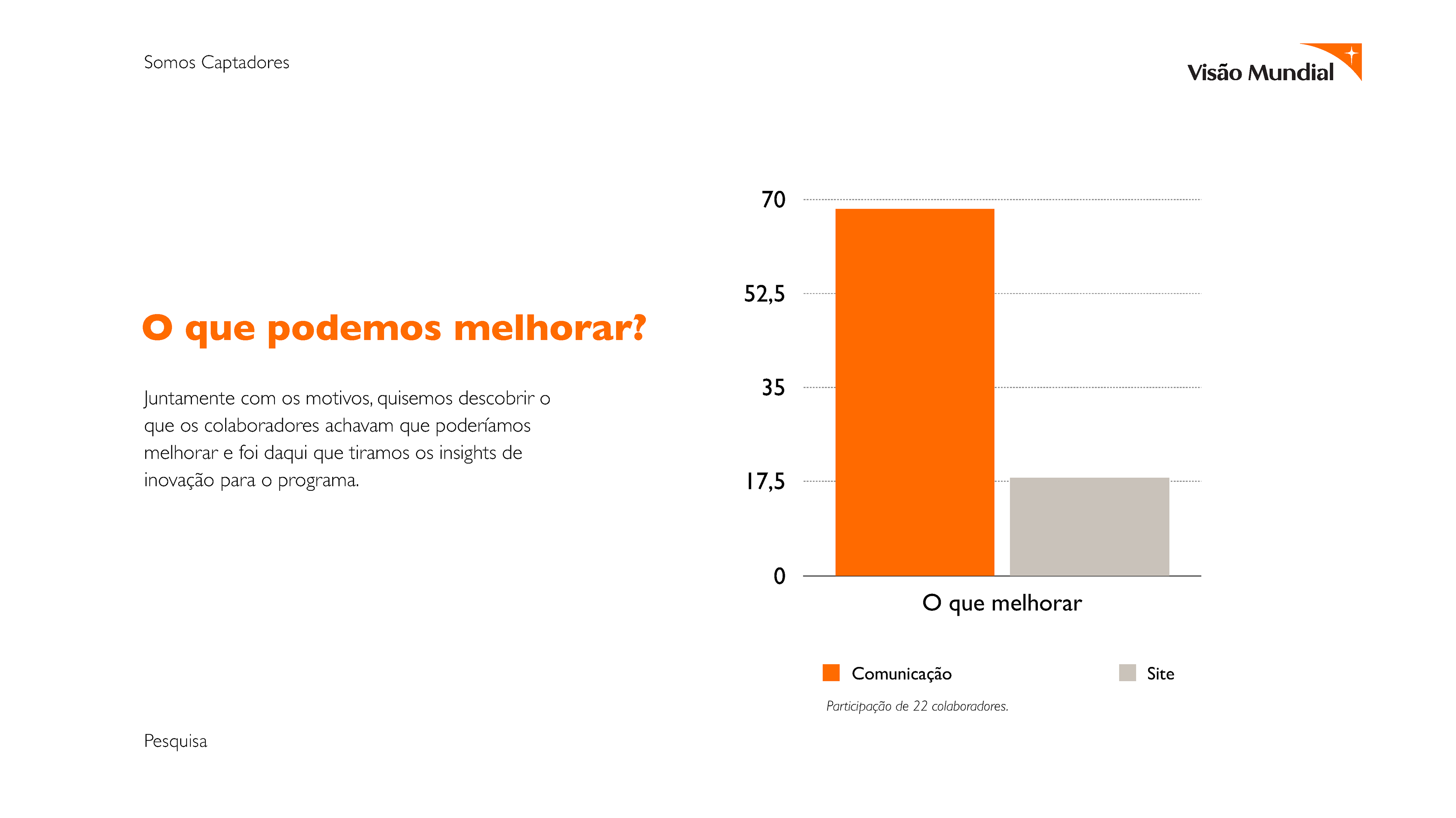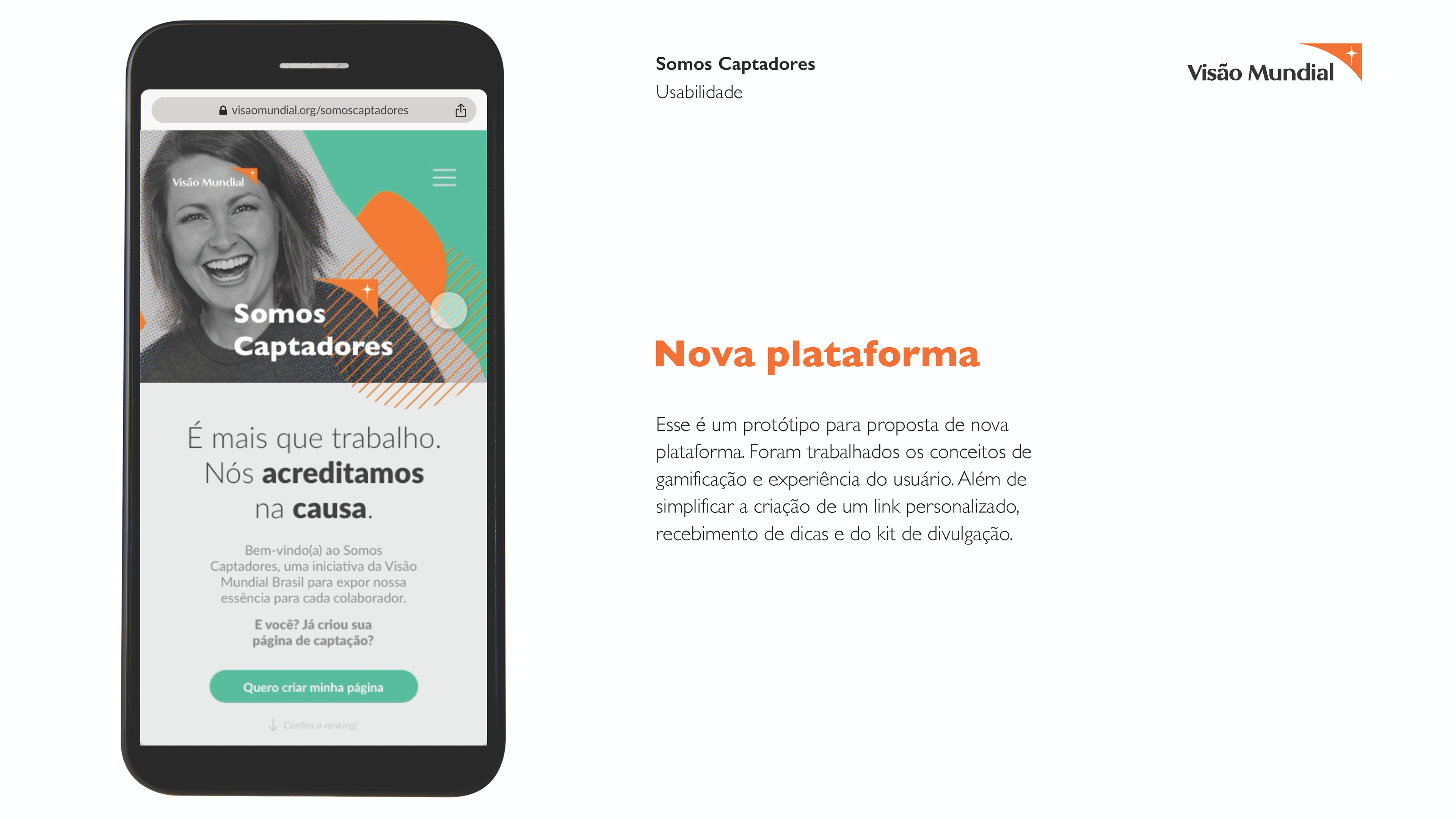 Projeto de nova plataforma para um produto interno da Visão Mundial.